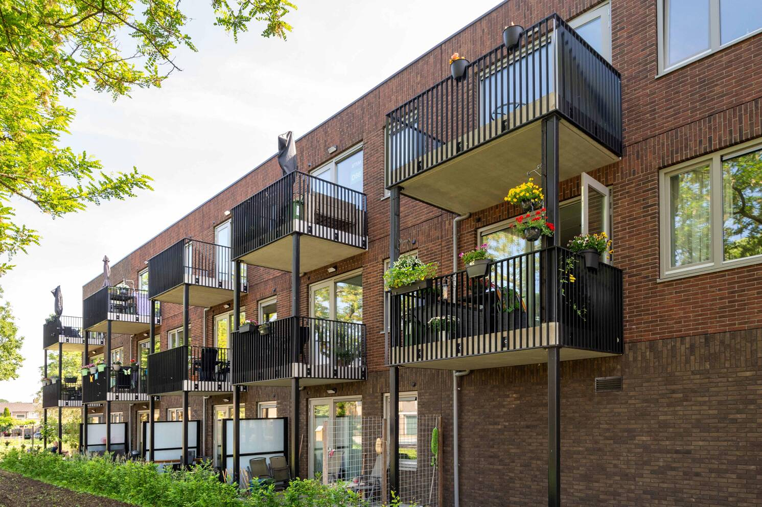 een appartementencomplex van 3 verdiepingen