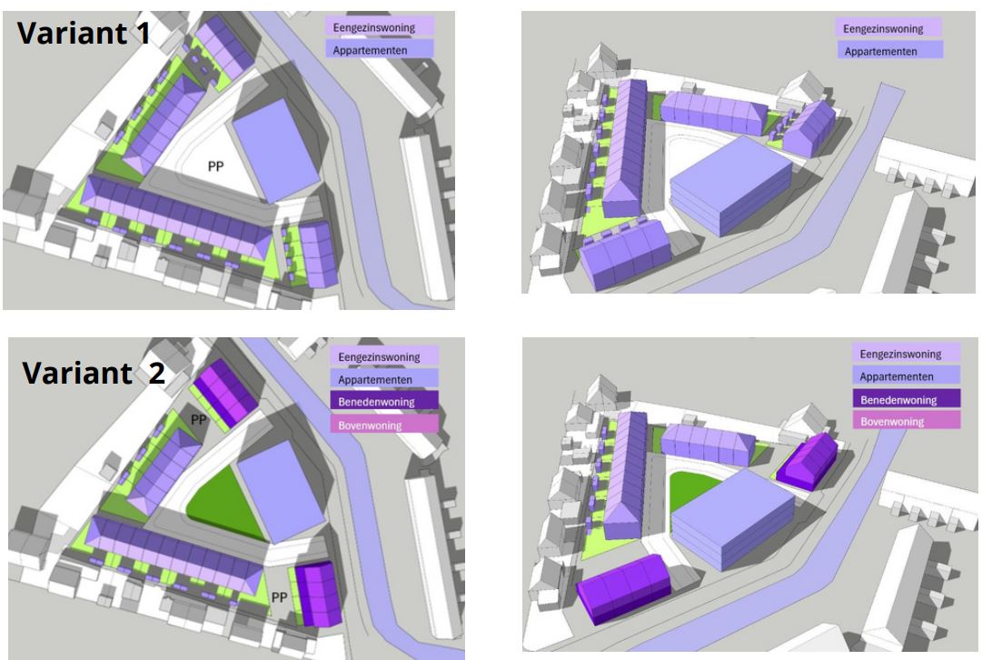 Omdat het woningtekort groot is, willen we wél minimaal hetzelfde aantal woningen terugbrengen. Daarom hebben we een nieuwbouwplan gemaakt met een combinatie van eengezinswoningen en appartementen. Samen met bewoners hebben we twee varianten uitgewerkt: