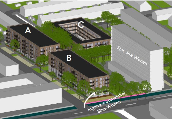 Blok B: 53 sociale huurwoningen en het kantoor van Elan Wonen